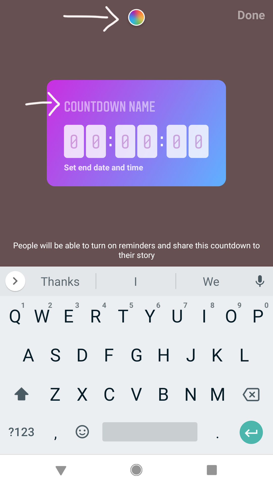 Use the capture button to take a photo or video. Enter the details time date colors etc and voila. Using Instagram Countdown Story Stickers.